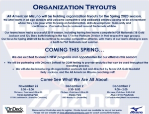 All American Mizuno Organizational Try-outs! By Keri|2019-11-20T09:28:09-08:00November 20th, 2019|Categories: Uncategorized|Tags: allamerican, asa, fastpitch, mizuno, nationals, organization, pgf, softball, travelsoftball, travelsoftballteam, tryouts, usssa|0 Comments Related Posts Home School Week 3 is Here!!! Gallery Home School Week 3 is Here!!! April 7th, 2020 | 0 Comments Pocket Girls Softball Clinic!! Gallery Pocket Girls Softball Clinic!! January 13th, 2020 | 0 Comments September Collegiate Skills Camp 2019! Gallery September Collegiate Skills Camp 2019! September 3rd, 2019 | 0 Comments All American Mizuno Tryouts – August 6th – 10th! Gallery All American Mizuno Tryouts – August 6th – 10th! July 28th, 2019 | 0 Comments All Skills Camp and Tournament with College Coaches – Friday July 19, 2019 Gallery All Skills Camp and Tournament with College Coaches – Friday July 19, 2019 July 8th, 2019 | 0 Comments