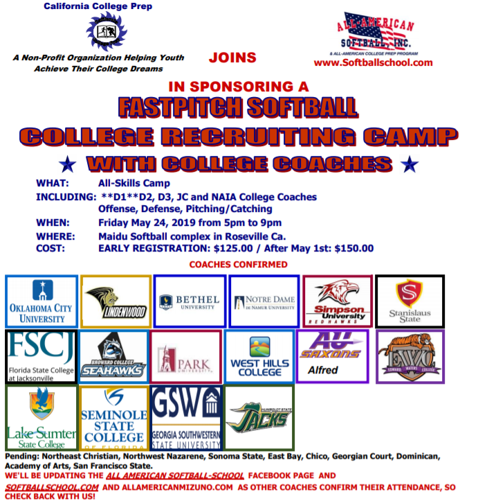 Ready for the Memorial Day Skills Camp? – May 24th 2019 To signup click here! By Joseph Valdes|2019-05-24T06:09:52-08:00April 26th, 2019|Categories: Uncategorized|0 Comments Related Posts Home School Week 3 is Here!!! Gallery Home School Week 3 is Here!!! April 7th, 2020 | 0 Comments Pocket Girls Softball Clinic!! Gallery Pocket Girls Softball Clinic!! January 13th, 2020 | 0 Comments September Collegiate Skills Camp 2019! Gallery September Collegiate Skills Camp 2019! September 3rd, 2019 | 0 Comments All American Mizuno Tryouts – August 6th – 10th! Gallery All American Mizuno Tryouts – August 6th – 10th! July 28th, 2019 | 0 Comments All Skills Camp and Tournament with College Coaches – Friday July 19, 2019 Gallery All Skills Camp and Tournament with College Coaches – Friday July 19, 2019 July 8th, 2019 | 0 Comments